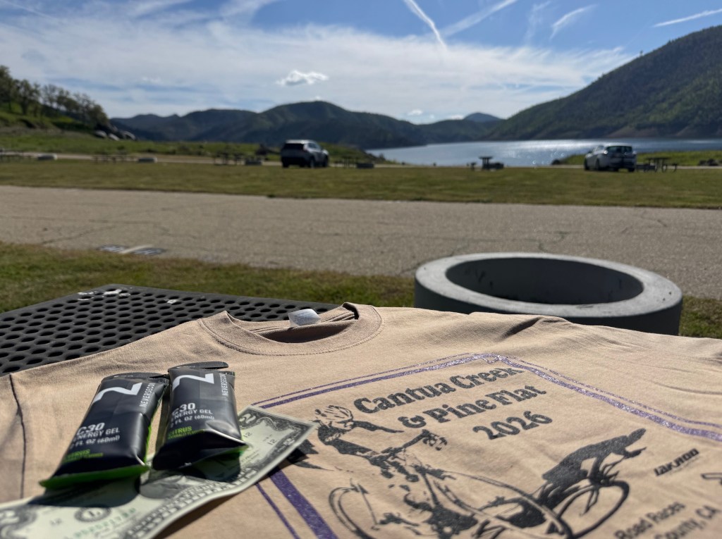 For those that don’t know, Pine Flat is in the top three of the most beautiful road races in California. It is set in the Sierra Nevada foothills and is a near complete loop of 62 miles ending on a mountain top finish. It begins by a marina for Pine Flat Reservoir and stays along the lake for the first 22 miles. There is an out and back with a 180 turn 11 miles from the start then after those 22 miles, the road veers away from the lake slowly climbing for two miles followed by a descent of about 3 miles to the valley floor. After the descent, there are rollers along Kings River eventually settling into a flat section among orange orchards heading west then takes a 90 degree right, straight north, 40 miles into the race. After 3 more miles of orchards, it takes another right and the road starts rolling gently uphill as it winds through ranch land before one last right turn into the final climbs. There is one big climb followed by a rolling pedal descent of 7 miles before a final 1 mile climb to the finish.